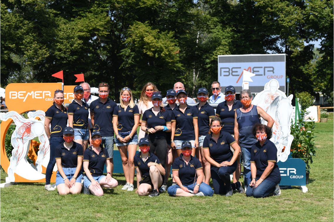 Foto: Ursula Puschak: Besonderer Dank gilt allen Sponsoren und ehrenamtlichen Helfern, die über die Turniertage vollen Einsatz gezeigt haben. Team der Hippo GmbH mit Hansi Blum vor Sponsorensprung der BEMER Int. AG.