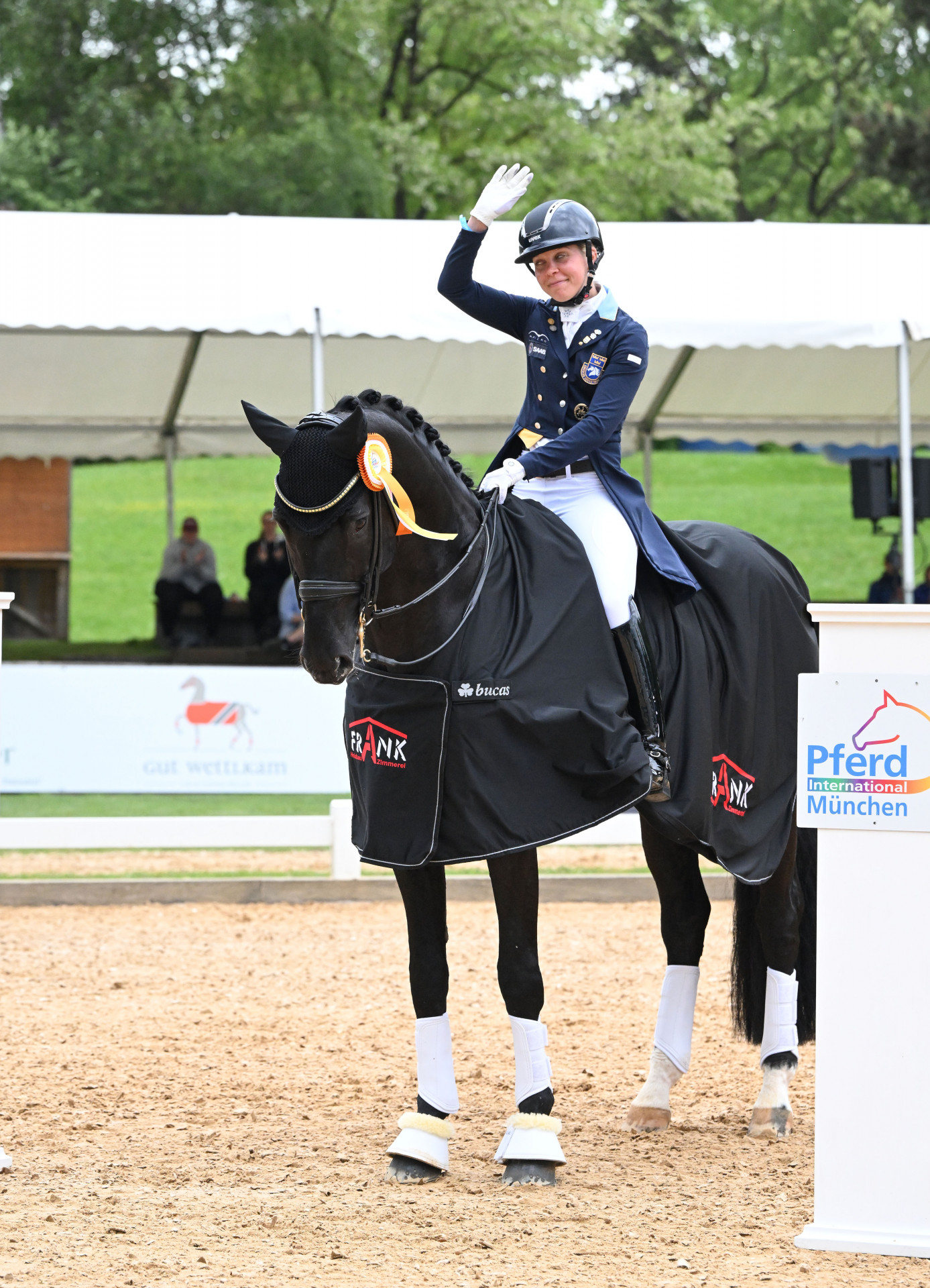 Auf 5*-Niveau tanzten die Vierbeiner durch die Gut Wettlkam Dressurarena und boten den Zuschauern einen fantastischen Ritt nach dem anderen. Die beste Vorstellung gab eine junge Schwedin, die im vergangenen Jahr auch bei den Olympischen Spielen in Tokio an den Start gegangen war: Therese Nilshagen, die nach dem Abitur nach Deutschland zog, um Deutsch zu lernen und zu reiten und dann nicht nur hier blieb, sondern auch die Liebe zum Reitsport zum Beruf machte. Mit dem lackschwarzen Oldenburger Hengst Dante Veltino OLD setzte sie sich an die Spitze, noch vor Benjamin Werndl aus Aubenhausen. Der junge Familienvater, bestens gecoacht von der amtierenden Olympiasiegerin in Gestalt seiner Schwester Jessica von Bredow-Werndl, lenkte seinen bewährten Daily Mirror wie stets mit leichter Hand zur silbernen Schleife. Drittplatziert wurde Dorothee Schneider mit Faustus.